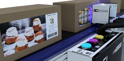 Drucksystem vier-farbig zum direkten Bedrucken von Kartons in Linie
